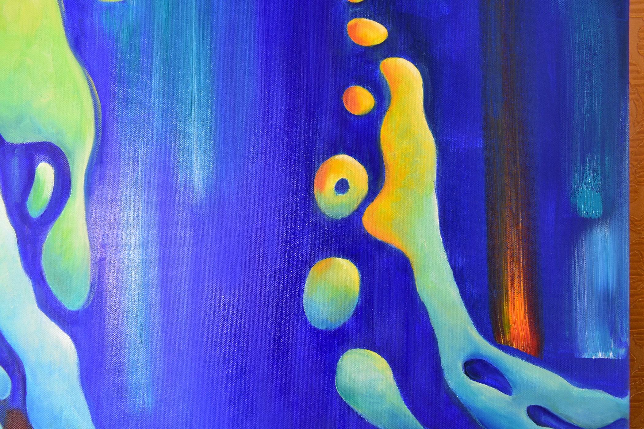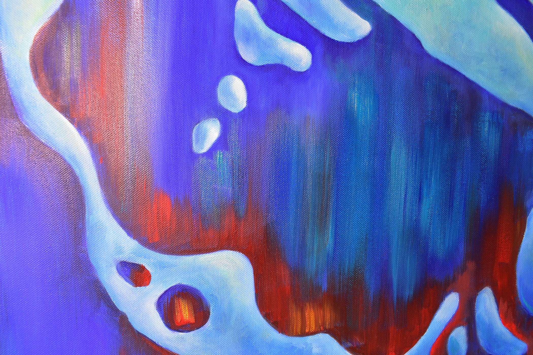Поющие фонтаны – магическое представление, построенное на взаимодействии света, музыки и потоков воды. Струи воды превращаются в живых танцоров, они взлетают высоко вверх в мажорных аккордах и склоняют голову под минорные. Сияние цветных капель и переливы пенных форм создают волшебные костюмы для этих талантливых артистов. Музыкальные фонтаны встречаются по всему миру, неизменно притягивают туристов и оставляют яркий след в воспоминаниях. Это истинное чудо водной инженерии. Картина написана в технике многослойной живописи с лессировками тонкими слоями масляной краски, что позволяет создать трехмерный объем и свечение нижних слоев краски через прозрачные верхние слои. Работа над картиной проходила в течение нескольких недель, чтобы добиться полного высыхания и укрепления каждого предыдущего слоя.