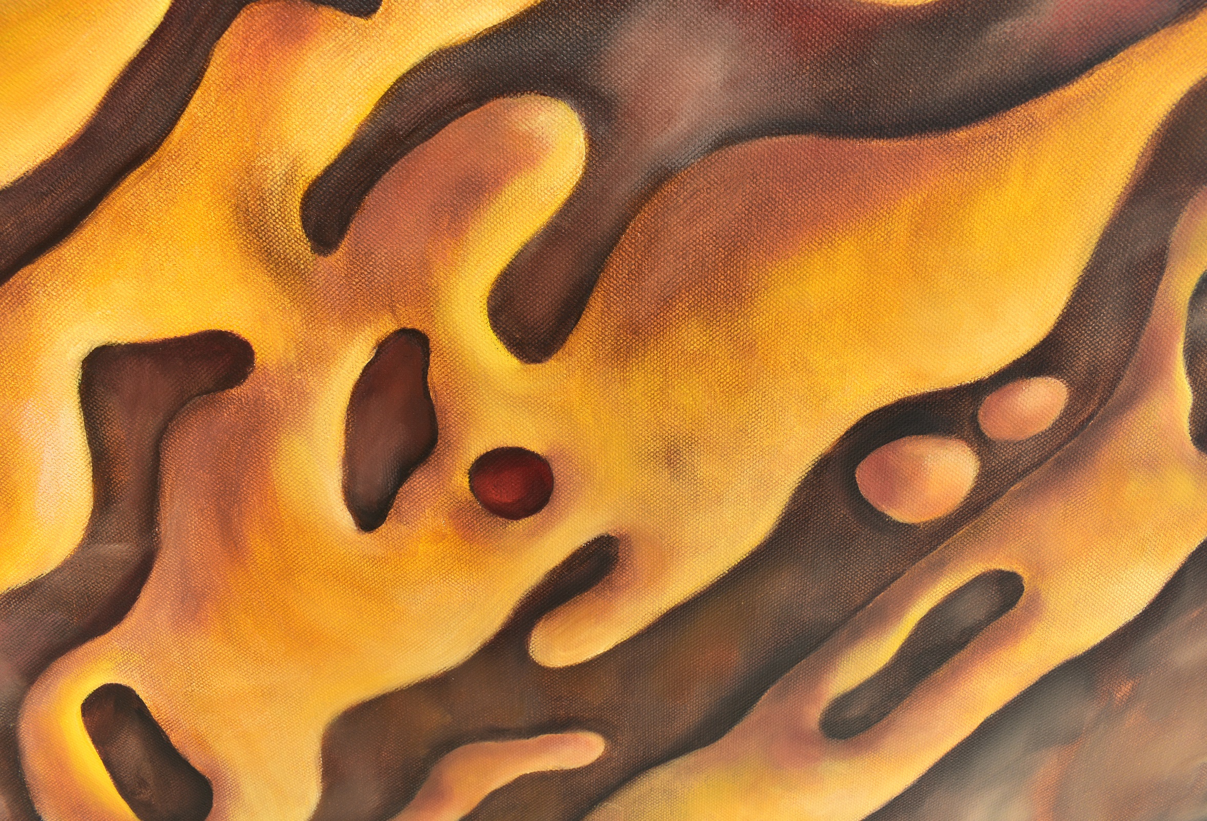 Поющие фонтаны – магическое представление, построенное на взаимодействии света, музыки и потоков воды. Струи воды превращаются в живых танцоров, они взлетают высоко вверх в мажорных аккордах и склоняют голову под минорные. Сияние цветных капель и переливы пенных форм создают волшебные костюмы для этих талантливых артистов. Музыкальные фонтаны встречаются по всему миру, неизменно притягивают туристов и оставляют яркий след в воспоминаниях. Это истинное чудо водной инженерии. Картина написана в технике многослойной живописи с лессировками тонкими слоями масляной краски, что позволяет создать трехмерный объем и свечение нижних слоев краски через прозрачные верхние слои. Работа над картиной проходила в течение нескольких недель, чтобы добиться полного высыхания и укрепления каждого предыдущего слоя.