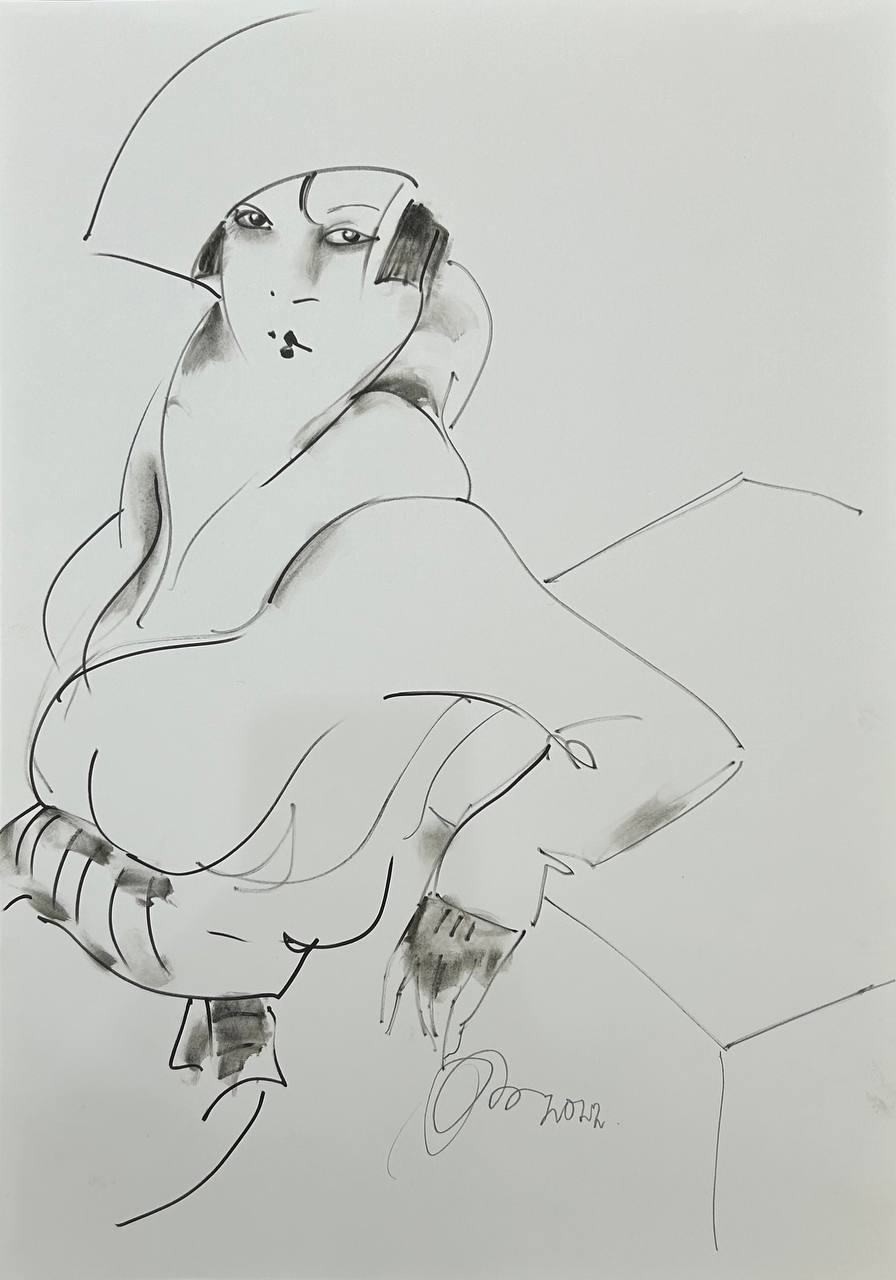 Дама в шляпе у стола