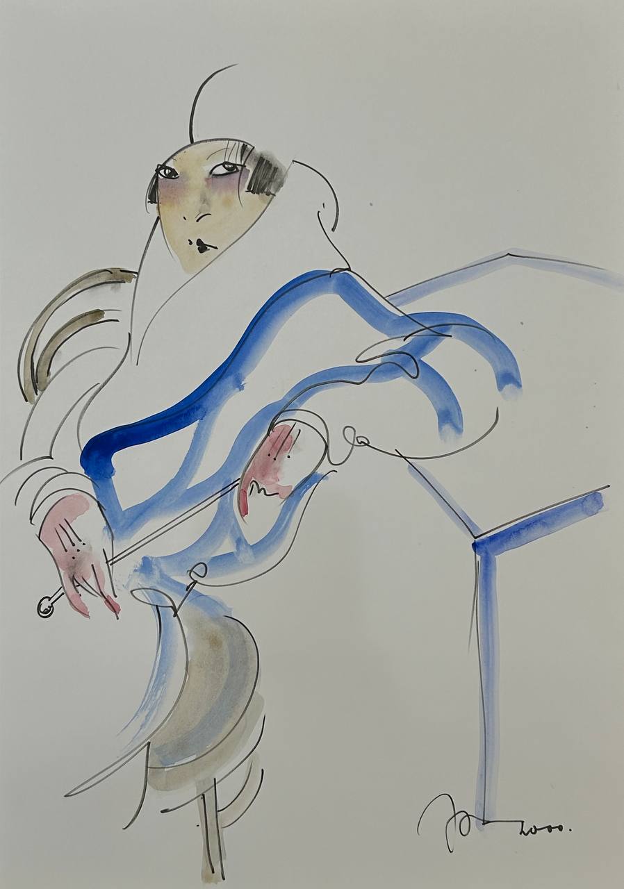 бумага, тушь, акварель