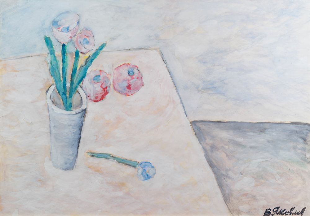Владимир Яковлев стал известен благодаря своей особой интерпретации природы и окружающего мира. Цветы, ставшие главными героями его произведений, в контексте творчества художника могут символизировать не только естественную красоту, но и глубокие философские размышления о жизни и смерти, о цикличности природы и человеческого существования. Владимир Яковлев не просто изображал натуру, но искал в цветах отражение глубоких внутренних эмоций и смыслов.